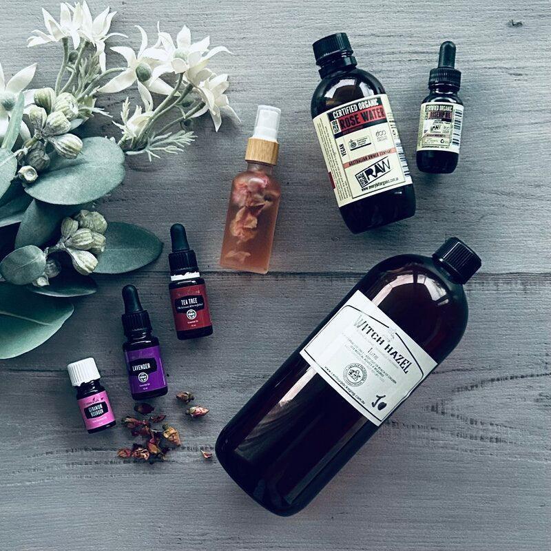 - Place the rose water, witch hazel, apple cider vinegar, rosehip oil, tea tree oil, lavender oil and Geranium Bourbon Oil in the bowl. Mix well.