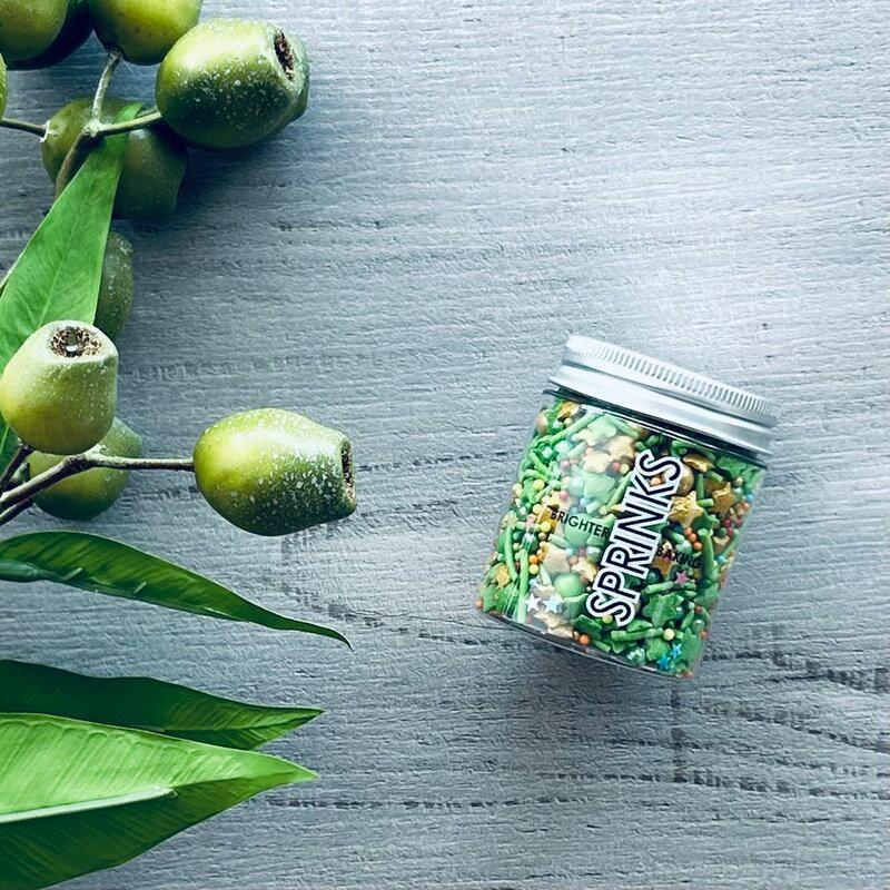 Scrooged Sprinkles by Sprinks are an ideal addition for any festive celebration. This product includes green & gold stars, jimmies, and multi coloured cachous. Perfect for topping cakes, cupcakes, and desserts, these sprinkles make a great finishing touch for your holiday baking.