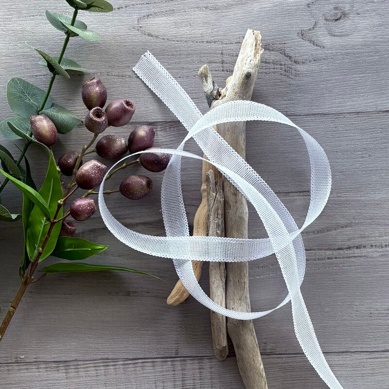 Faux Linen Ribbon with Scalloped Edge White 25mm x 10mt