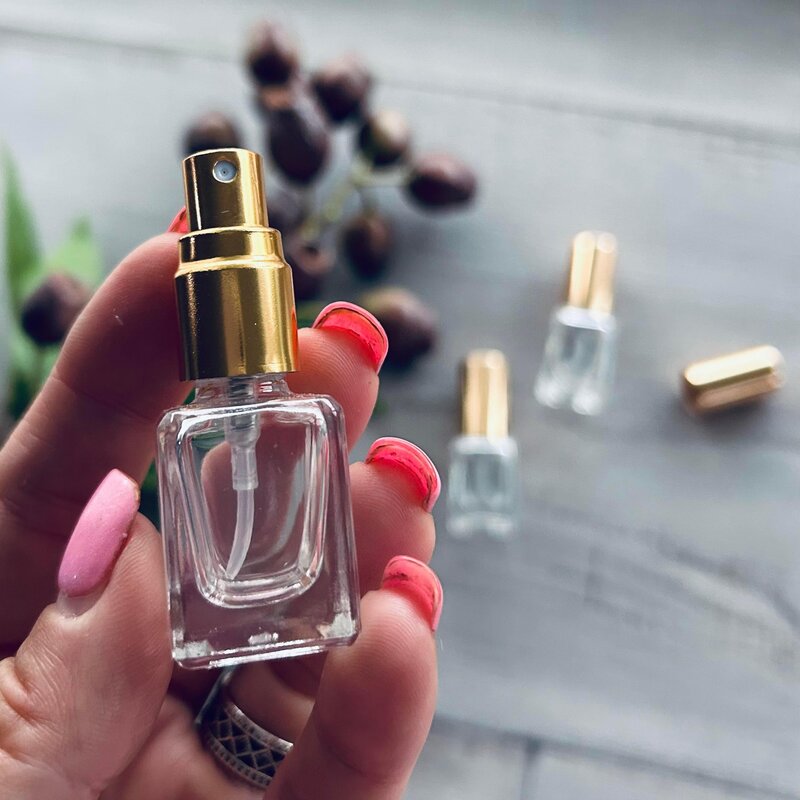 This compact 5ml Glass Cube is ideal for essential oil perfumes. For your handbag or make-up bag, this is a unique shape and size.