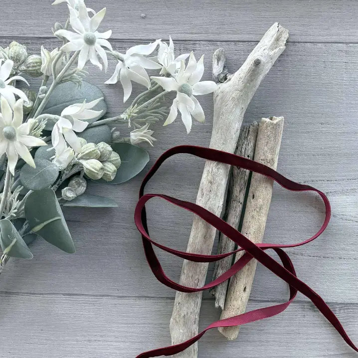 Add a luxurious touch to your decorations and creative projects with our Premium Plush Velvet Ribbon. Crafted with a beautifully soft, velvety finish and elegant woven edges, this 10mm wide, 20-meter long ribbon brings a refined look to every creation. Ideal for gift wrapping, floral arrangements, weddings, and festive decorating, its deep dark red hue adds warmth and sophistication to any setting.