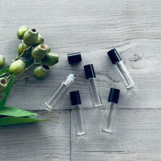 10ml Clear Glass Roller Bottle with Black Lid - Pack of 5