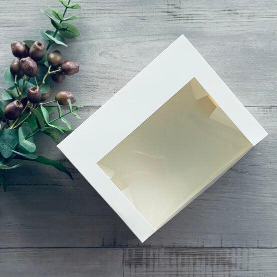 Beautiful Cupcake box that holds six cupcakes or 12 minis. Clear window for perfect presentation.