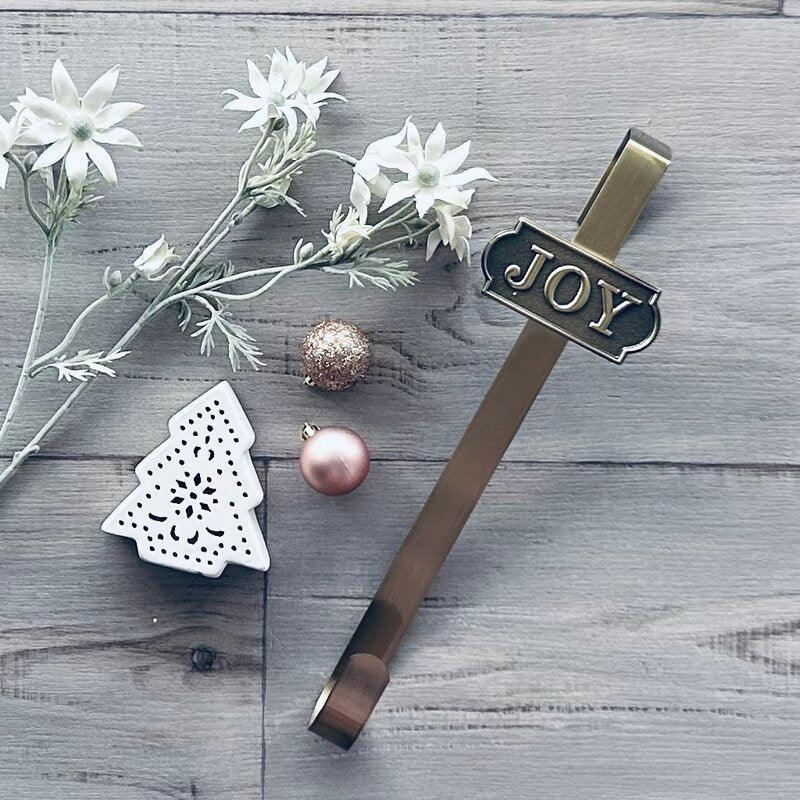 Add a touch of festive cheer to your holiday décor with the Joy Metal Wreath Door Hanger - Brass. This door hanger offers a robust 37cm length, perfect for hanging a wreath over a door. Bring the holiday spirit to your home with the Joy Metal Wreath Door Hanger.