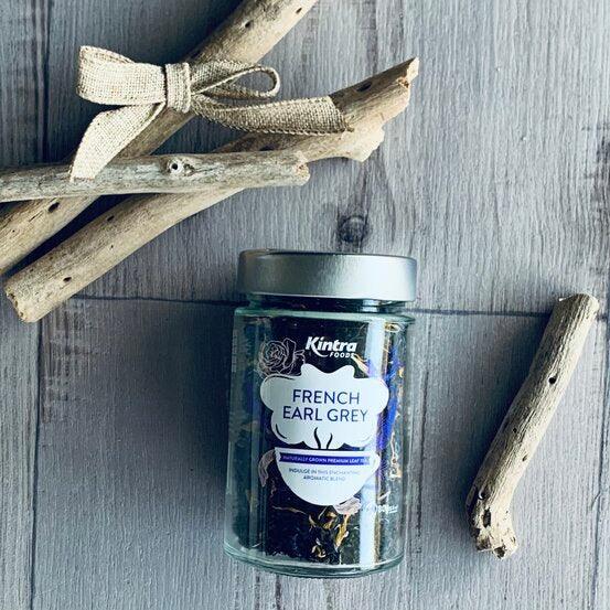 Enjoy a fragrant and refined tea experience with Kintra Premium Loose Leaf French Earl Grey Tea. This elegant blend features traditional Earl Grey black tea enhanced with rose petals, blue cornflower petals, and calendula petals. The result is a smooth, aromatic brew with floral notes and a refreshing finish. Perfect for afternoon tea or a quiet moment of indulgence.