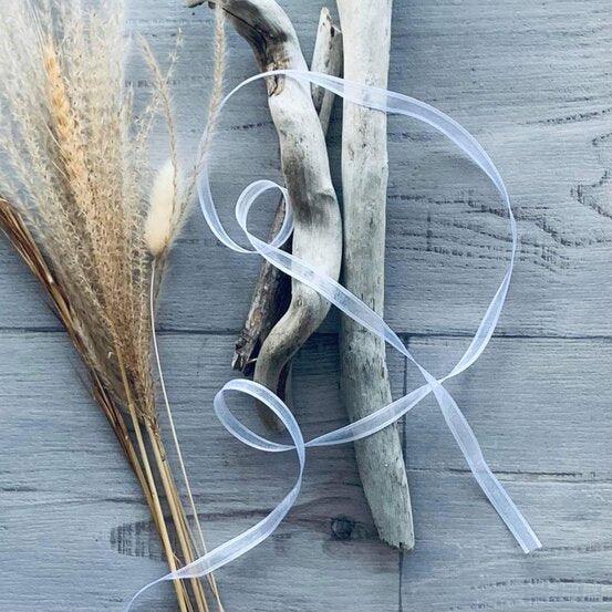 This lovely white sheer organdy, satin edged ribbon is a great basic go to ribbon for your crafting needs.
