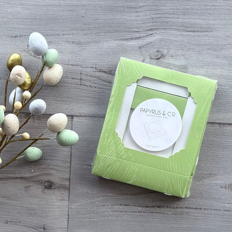 As a product expert, enhance your gifts with the Treat Box Medium - Pastel Green (5 Pack). These strong and stylish boxes elevate any baked goods, party favors, or small treats. Perfect for any occasion, the soft green color adds a charming touch to your packaging needs, from Easter to business purposes.