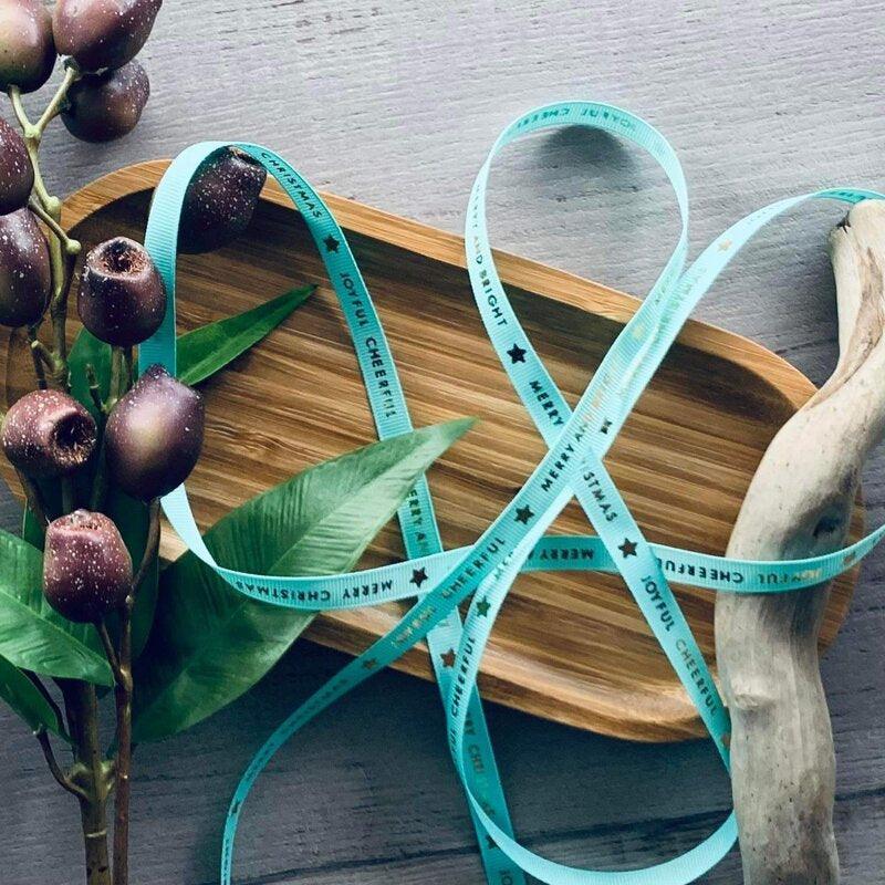 Christmas Cheer Grosgrain Ribbon Metallic Gold on Aqua 1cm x 25m – Centaur Packaging